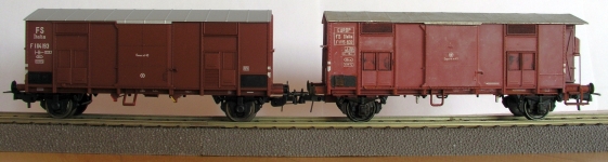 Von A.C.M.E. liegt mir der F in Epoche III ohne Bremserhaus und mit Blechwänden vor. Ich vergleiche hier mit dem F mit Bremserhaus aus einem TTM-Bausatz der ist in den Fotos neben dem Bremserhaus auch an einer leichten Alterung zu erkennen.