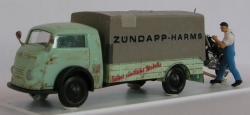 Eher zufällig und wieder unwiderstehlich fand ich dann einen Tempo 1400 Tieflader eines Zweiradhändlers "ZÜNDAPP - HARMS". Gerade das "Knautschgesicht" des 1400-ers macht diesen Transporter so interessant, finde ich. Ein wenig Suchen im Internet brachte über Wikipedia und Google sehr schnell einige interessante Seiten zur Tempo-Fahrzeugpalette zum Vorschein und auch Fotos der verschiedenen Typen. An der Stelle begann ich nachzudenken, daß das Epoche-Modell mit den löffelartigen Außenspiegeln doch noch viel uriger aussehen würde.